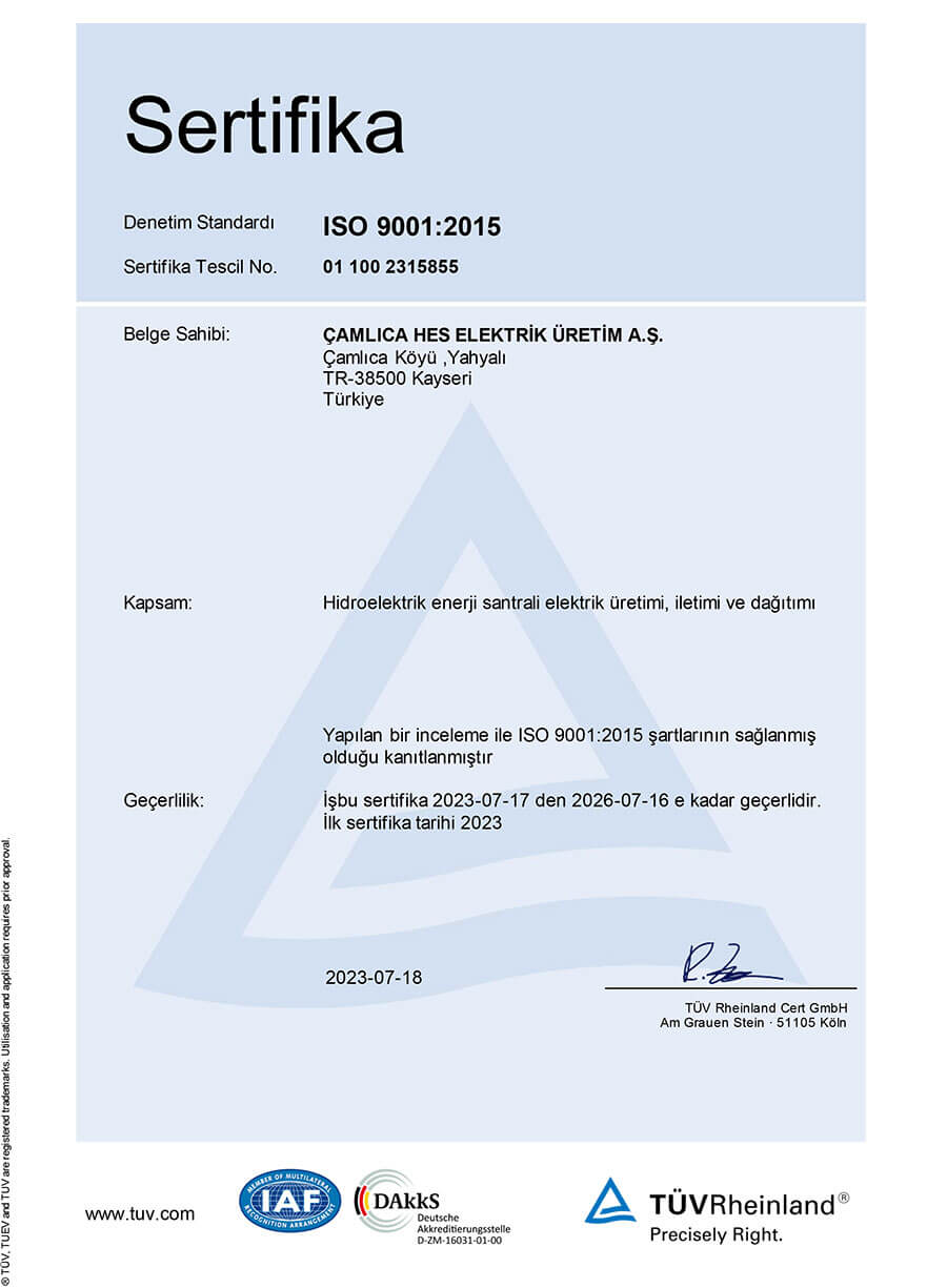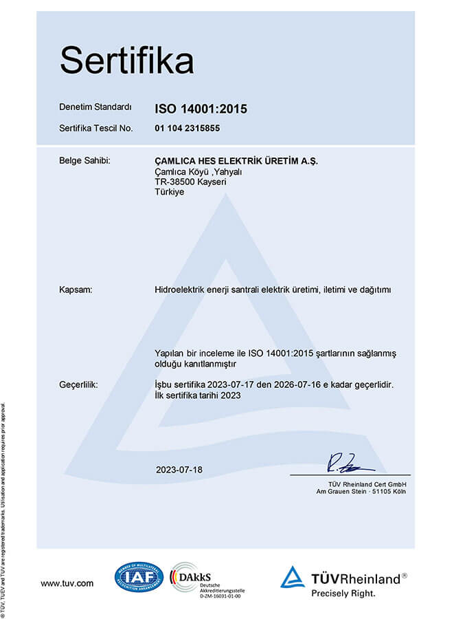 Yenilenebilir Enerji Sertifikası (IREC Sertifikası), uluslararası piyasalarda da geçerliliği olan, işletmemizin ürettiği elektriğin yenilenebilir enerji kaynaklarından elde edildiğini uluslararası düzeyde belgeler.Enerji tüketicilerine de kullandıkları elektriğin yeşil enerjiden sağlandığını belgeleyen bir global sertifikasyon sistemidir.